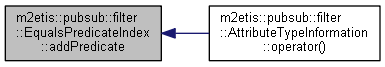 | PredicateIdentifierFactory::PredicateID | addPredicate (const EqualsAttributeFilter< EventType, AttributeType > *equals_attribute_filter) |